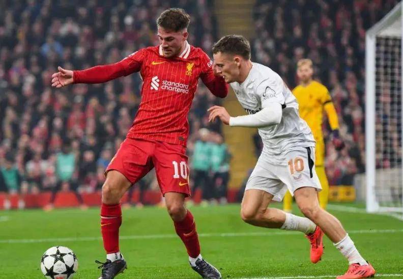 然而,仅仅过了短短九分钟,比赛的局势便发生了翻天覆地的变化。罗伯逊一脚精准的直塞球如同利剑般撕裂了法兰克福的防线,从法兰克福转投利物浦的埃基蒂克获得单刀机会,冷静地将球捅射入网。进球后,他高举双手,选择不庆祝,以此表达对老东家的尊重。这粒进球仿佛一把钥匙,瞬间开启了利物浦进攻的闸门。
