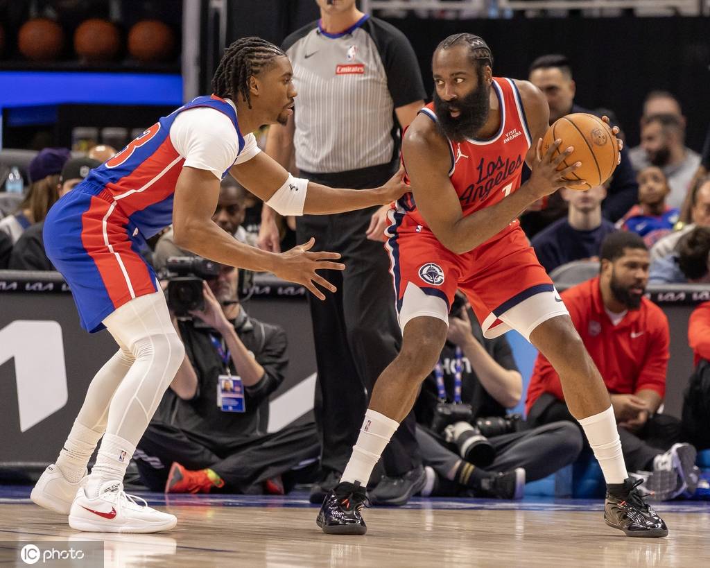 小卡26+8哈登19+7+7 科林斯25分快船逆转残阵活塞